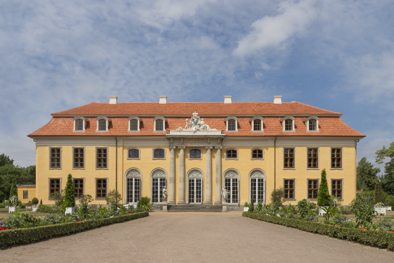 Die Barockanlage von Oranienbaum wurde ab 1683 als Sommersitz für Fürstin Henriette Catharina, Gattin des Fürsten Johann Georg II. von Anhalt-Dessau, erbaut und in den folgenden Jahrhunderten stetig verändert. Im 20. Jahrhundert wurde das Gebäude für die Anhaltische Gemäldegalerie hergerichtet, wodurch auch Spuren der Dessauer Bauhausära erhalten geblieben sind. Der Bauhausmeister und Farbkünstler Hinnerk Scheper entwickelte hierfür Farbfassungen, welche noch heute erlebbar sind.