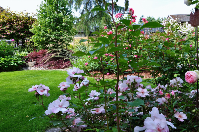 Berauschende Düfte und ein Feuerwerk an Farben! Genießen Sie unzählige Blüten. Zur Erfrischung werden rosige, sommerliche Getränke angeboten. Die Rosengärten sind Refugium einiger Katzen, daher müssen Hunde leider draußen warten.