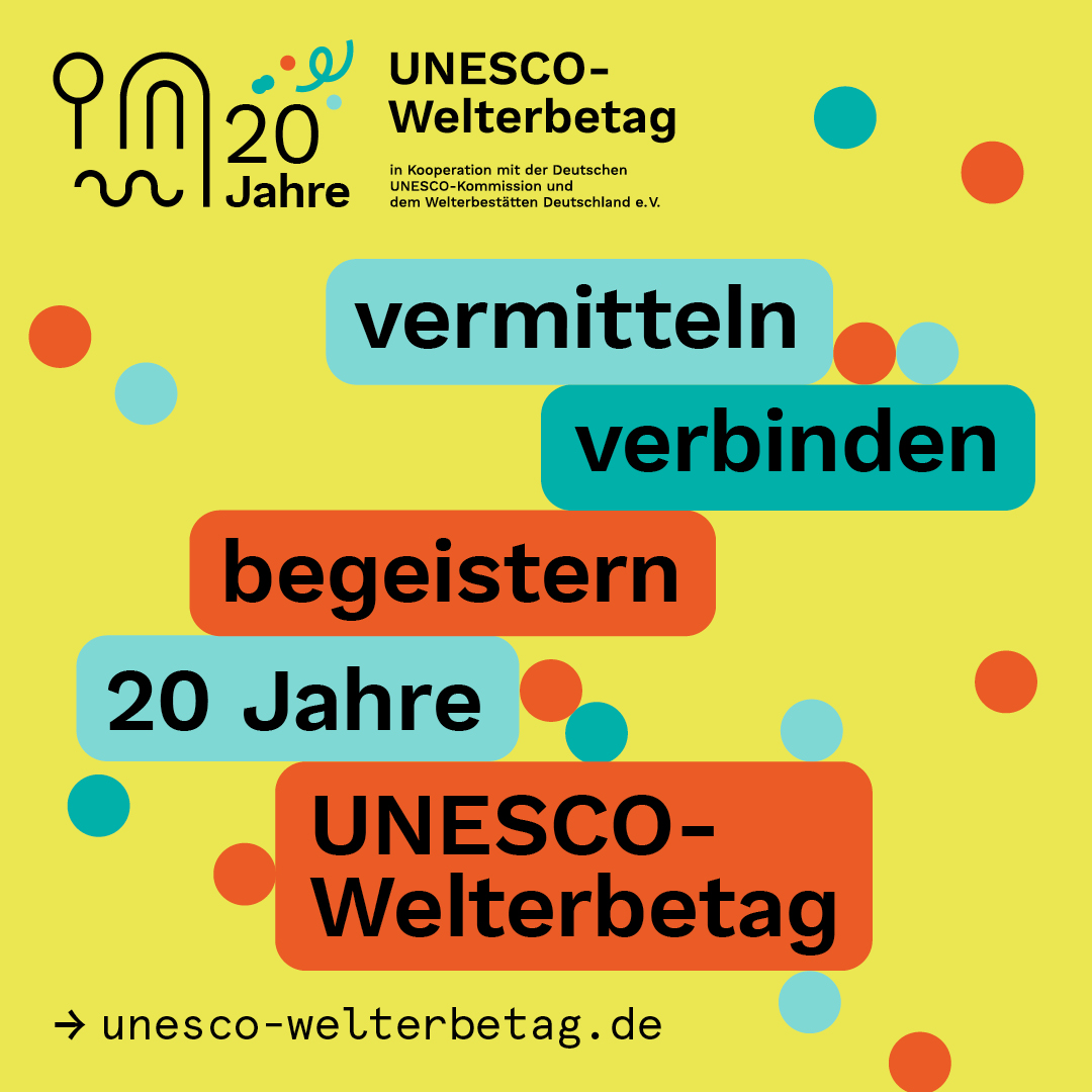 Am UNESCO-Welterbetag bieten die Welterbestätten in Deutschland auf Einladung der Deutschen UNESCO-Kommission und des Vereins UNESCO-Welterbestätten Deutschland ein vielseitiges Programm, das zum Erkunden und Entdecken des Kultur- und Naturerbes einlädt. Es finden Führungen und Vorträge, Musik und Aktionen vor Ort, aber auch im digitalen Raum statt. Sie rücken die Welterbestätten nicht nur als Orte besonders sorgfältiger Denkmalpflege ins Bewusstsein der Öffentlichkeit, sondern stärken auch ihre Rolle als Vermittler der UNESCO-Ziele wie Völkerverständigung, Nachhaltigkeit und Frieden.