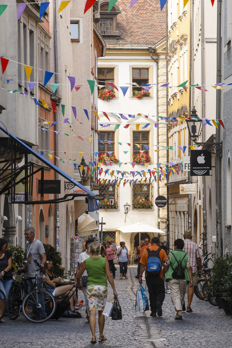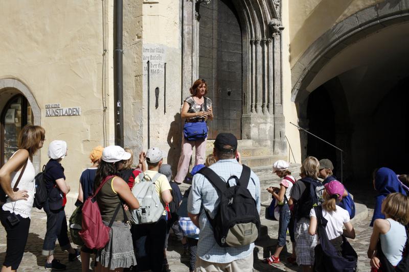 Egal, wie lange ein Regensburg-Aufenthalt dauert, egal ob Tourist oder Einheimischer: Eine Führung durch die Altstadt muss man einfach gemacht haben, zur Orientierung, zum Kennen- und zum Liebenlernen, zum Genießen. Der Rundgang führt durch die engen Gassen und über die weiten Plätze mit dem Flair der „nördlichsten Stadt Italiens”, zum Dom und zur Steinernen Brücke, zur Porta Praetoria und zum Alten Rathaus, zu Patrizierhäusern mit ihren Türmen und zu vielem anderen mehr.