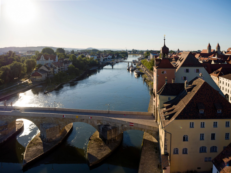 Die Steinerne Brücke verbindet die Altstadt mit Stadtamhof, gemeinsam sind sie Teil des Welterbes von Regensburg. Im letzten erhaltenen Turm der Steinernen Brücke könnt ihr euch bei freiem Eintritt von der Geschichte der Brücke begeistern lassen. Es werden auch Führungen durch die Ausstellung angeboten.